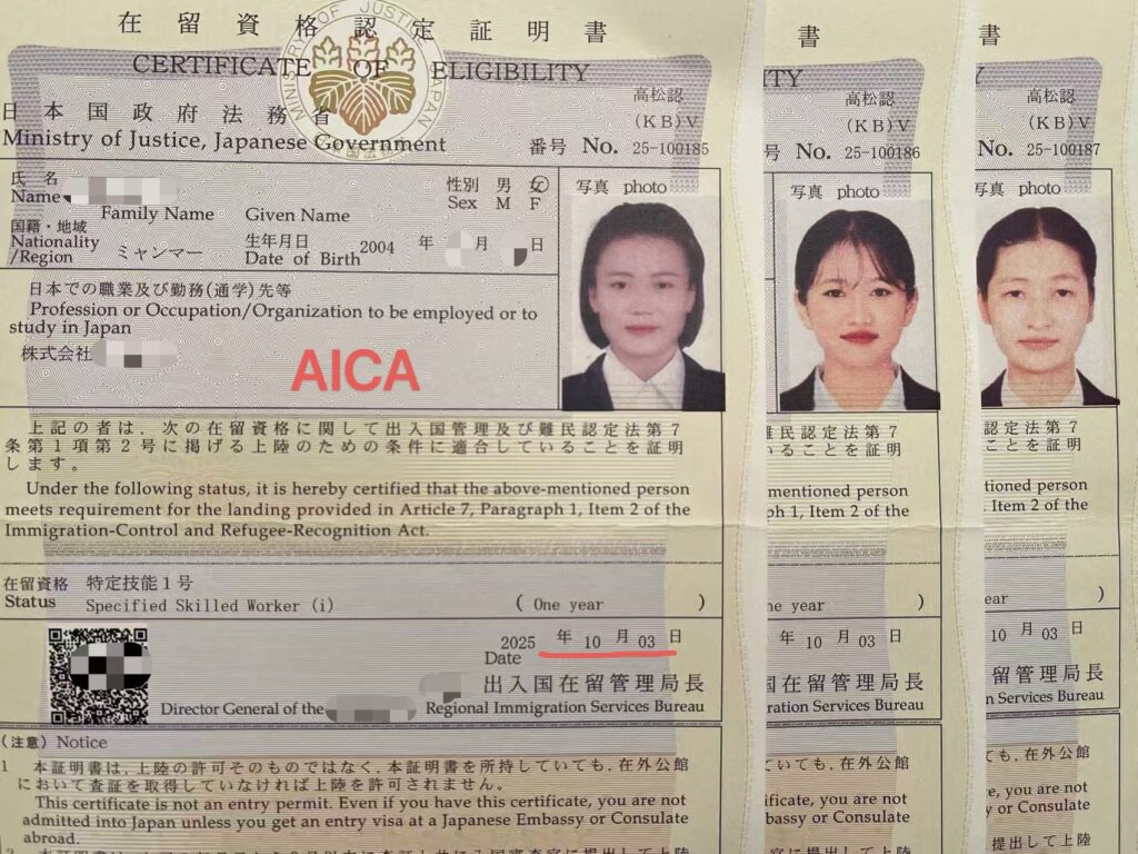 AICAの新たな介護特定技能1号生の在留認定が下りました🌹