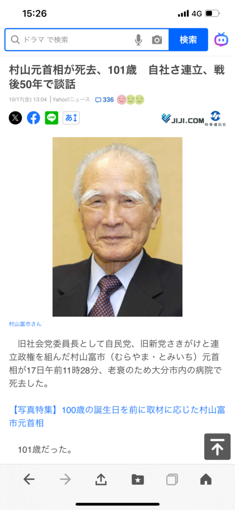 村山富市前総理大臣の逝去に、心からお悔やみ申し上げます。