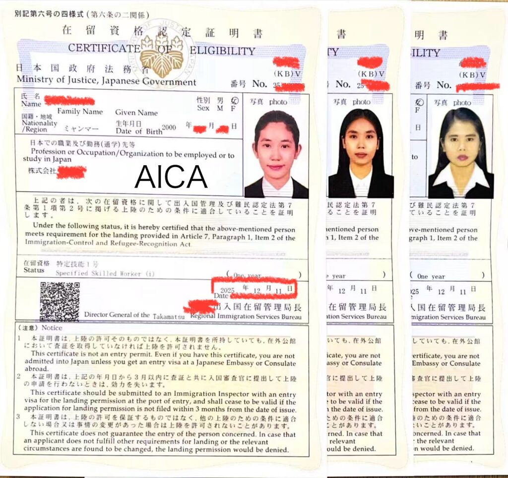新たなミャンマー3人特定技能1号生の在留が下りました🌺