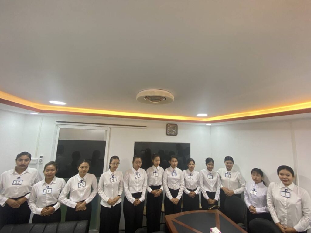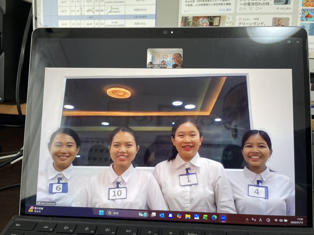 ミャンマー側に依頼してから3日後に返事を貰った時には既に40人の応募が有りました。会社の仕事のお弁当加工のことを考えて、ミャンマーの送り出し機関側に、手の速さのテストの実施を依頼しました。そして手の早い人から12人を選抜しました。その様子が2枚目の写真です。そして、1月13日に、AICAの事務所で、ミャンマー側とオンライン面接を実施しました。最終的に、4人の合格者が確定しました。それが3枚目の写真です。